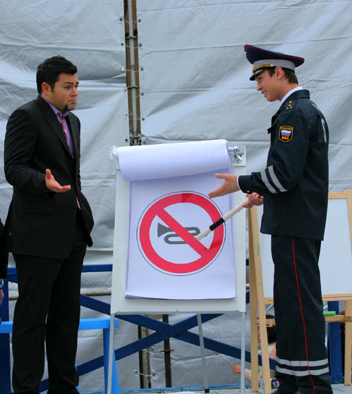 | Антон ЗАЦЕПИН прошел тест на знание правил дорожного движения, а у Алексея ЧУМАКОВА чуть не отобрали права. На празднике канала «ТелеНяня» в парке Горького звезд проверили на водительскую профпригодность. На днях телеканал отпраздновал свое день рождения со звездами. Оказалось, что известный певец Антон Зацепин только собирается получать права. Поэтому он с удовольствием проследовал с инспектором на специальную площадку, организованную каналом совместно с ГИБДД Москвы, и прошел полный тест на знание правил дорожного движения под чутким руководством настоящего милиционера. Тест был сдан на «отлично», и теперь Антон уверен, что готов к настоящему экзамену в ГАИ. А вот певец Алексей Чумаков долго не мог вспомнить название знака «Подача звукового сигнала запрещена». - Но ведь это не главное! - шутил певец. - Главное, я знаю, что этот знак обозначает – тут петь нельзя!
